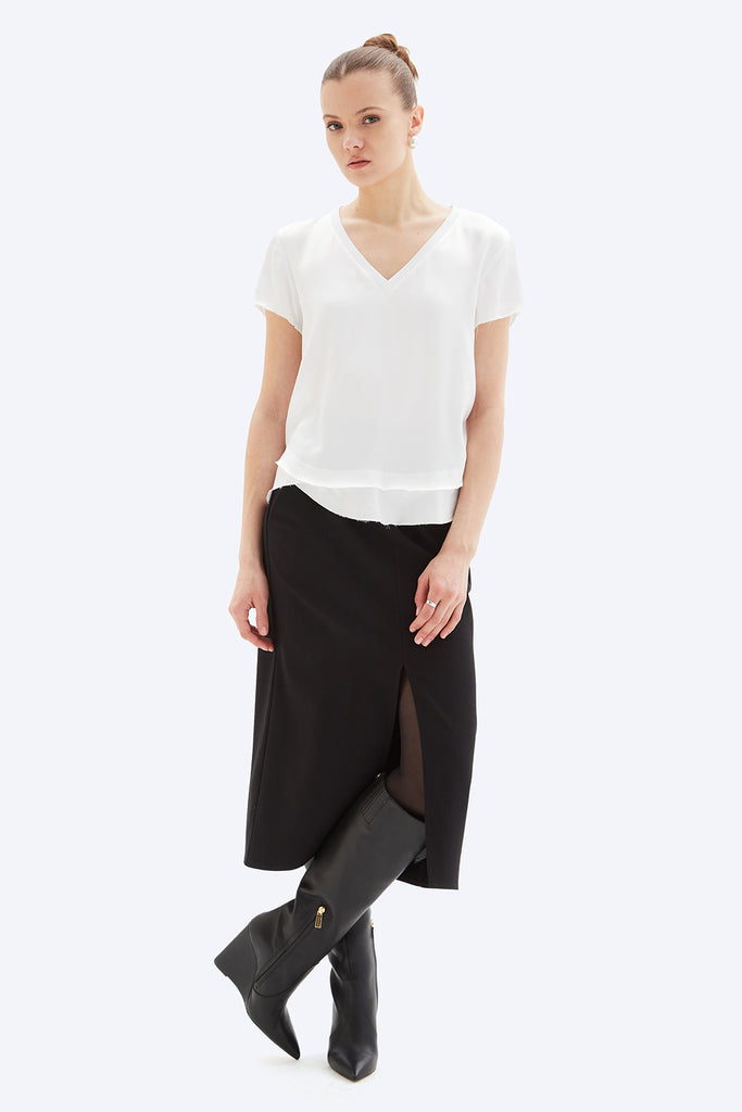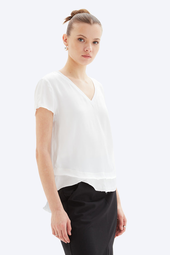 SATIN AVA V-NECK - V-Neck Mock Layer T-Shirt