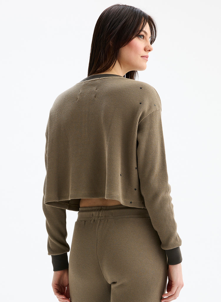 JULIETTE STARS - Oversized Crop Henley Long Sleeve Top