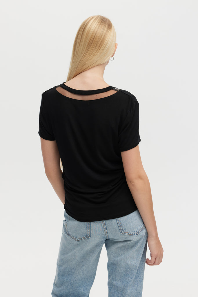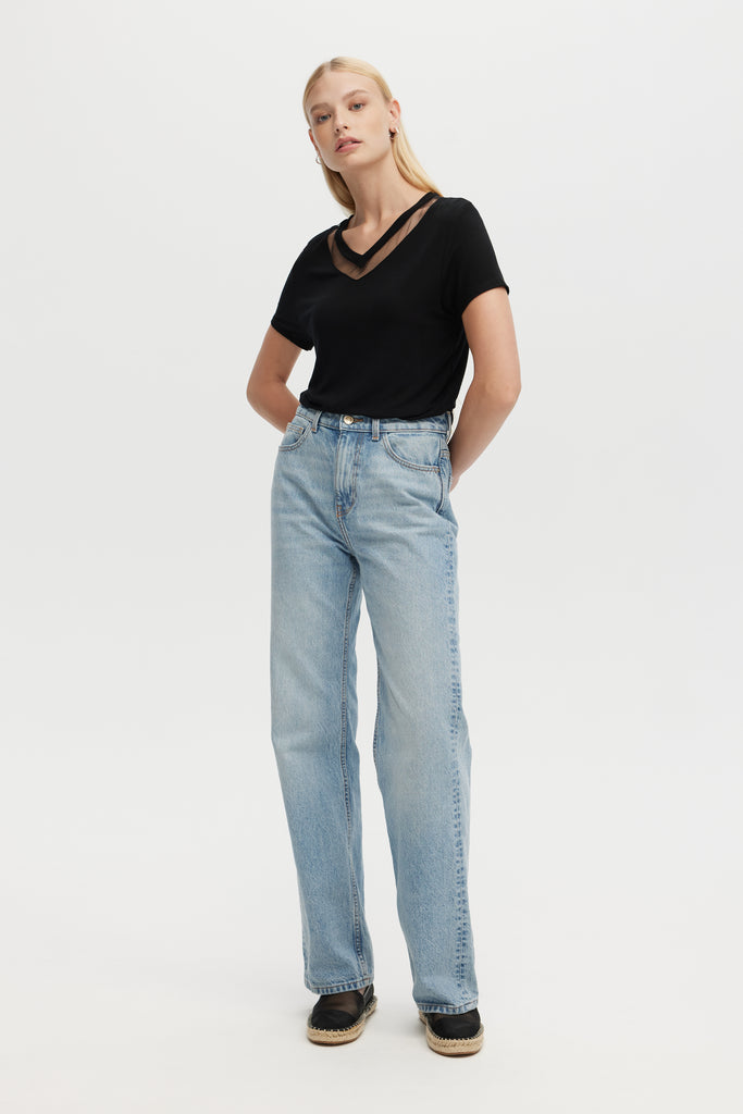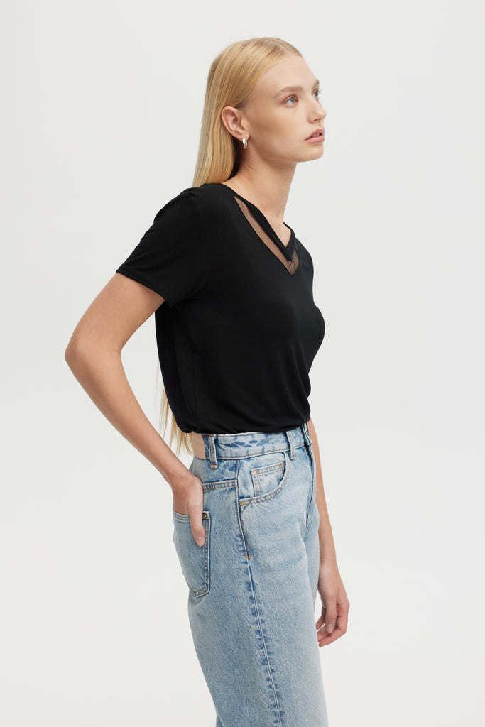 TULLE INSERTS V-NECK - V-Neck Fitted T-Shirt
