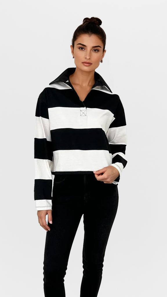 JULIETTE STARS - Oversized Crop Henley Long Sleeve Top