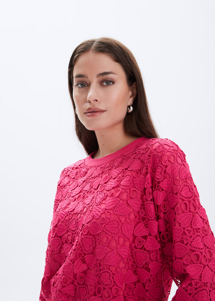 ALL OVER HEART CROCHET - Round Neck Sweatshirt