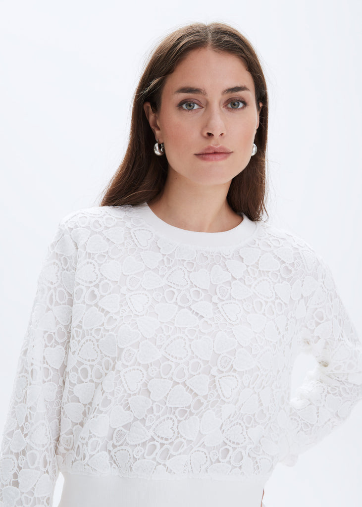 ALL OVER HEART CROCHET - Round Neck Sweatshirt