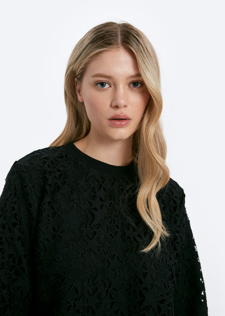 ALL OVER STAR CROCHET - Round Neck Sweatshirt