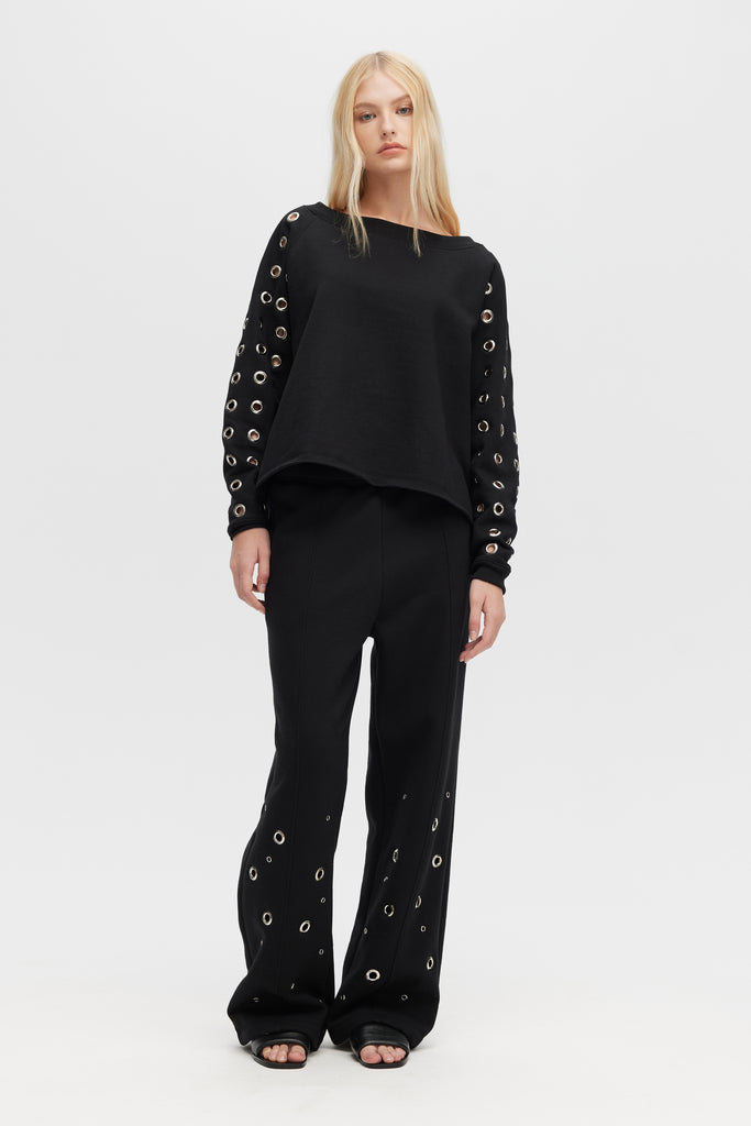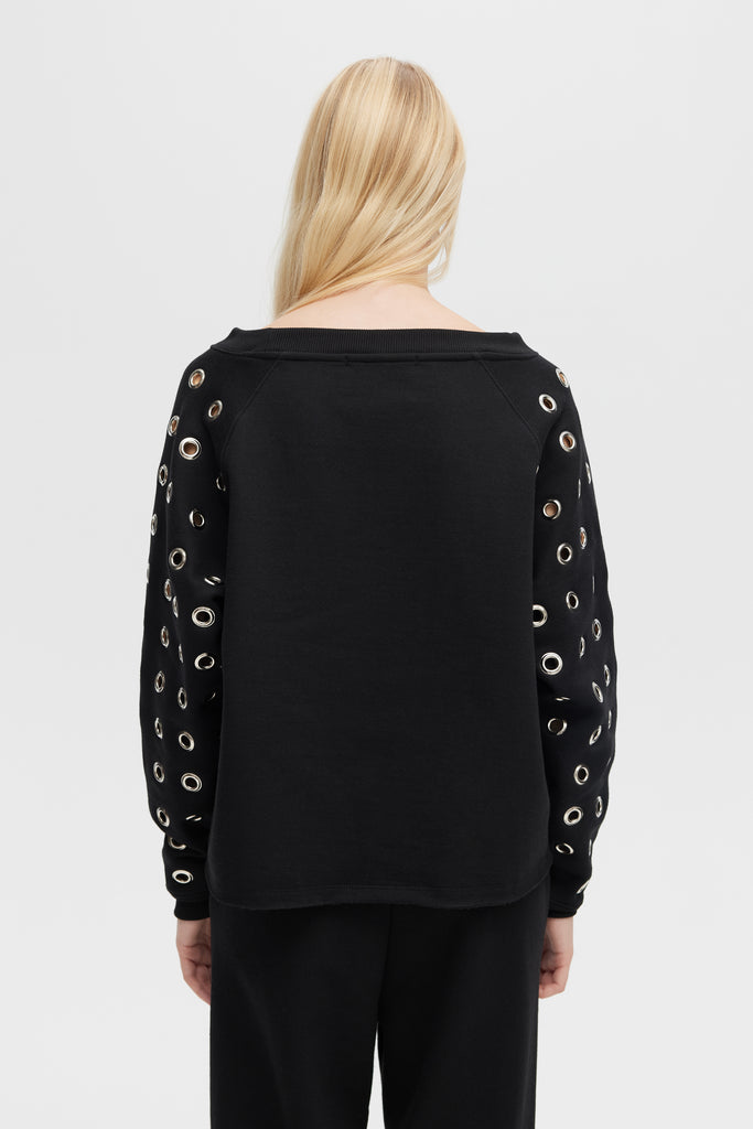 ANNA GROMMET SLEEVES - Crop Boat Neck Sweatshirt