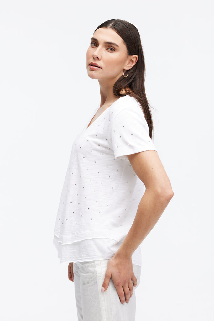 AVA ALL OVER STUDS - V-Neck Mock Layer T-Shirt