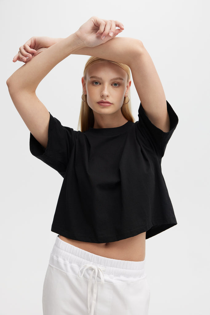 The BLAIR Crop Tee is your go-to for elevated everyday wear. Made from breathable cotton jersey, this women’s cropped t-shirt delivers a clean, boxy fit that’s built for comfort and versatility. Designed to sit at just the right spot on your waistline, it’s perfect to pair with high-rise bottoms, making it an essential staple for your casual wardrobe.