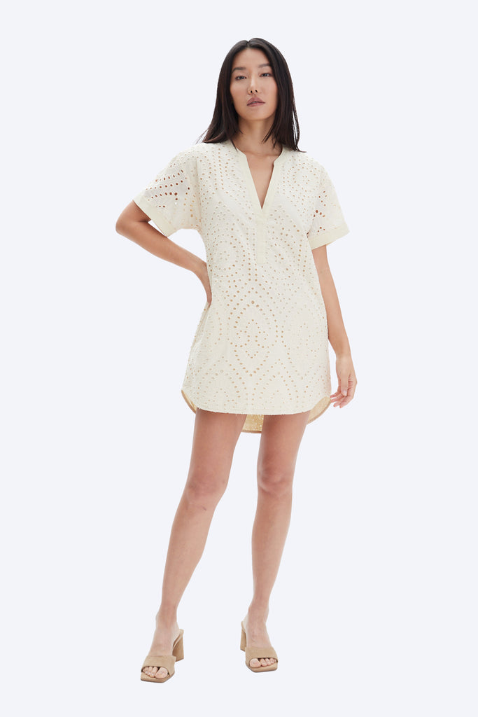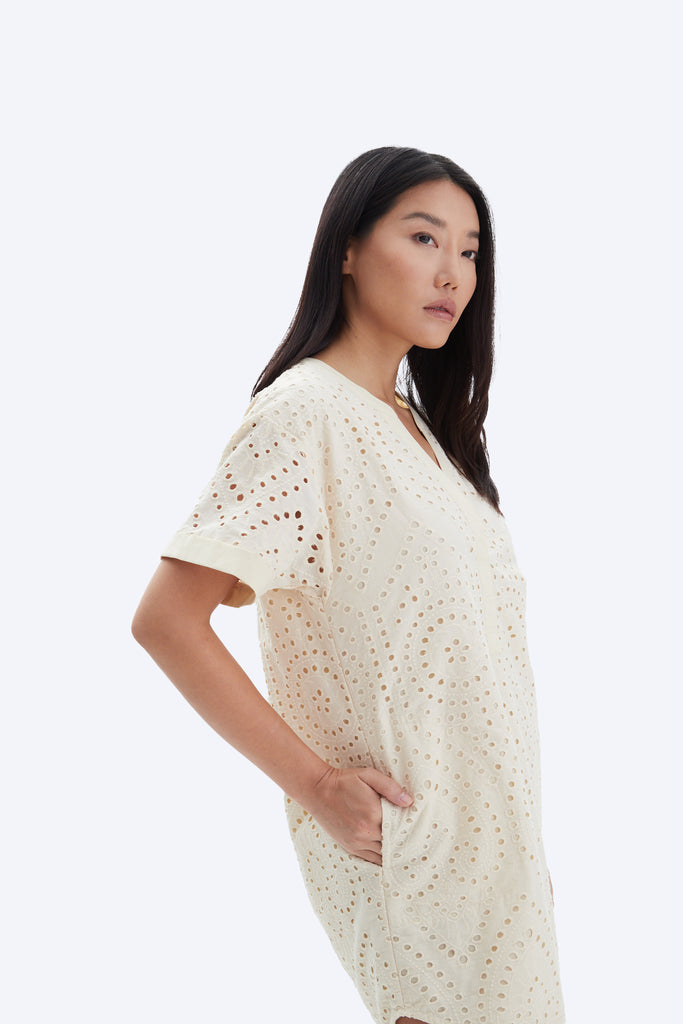 EYELET LYDIA - Rolled Sleeve Mini Gauze Dress