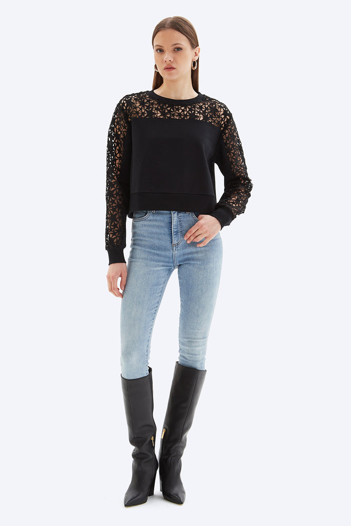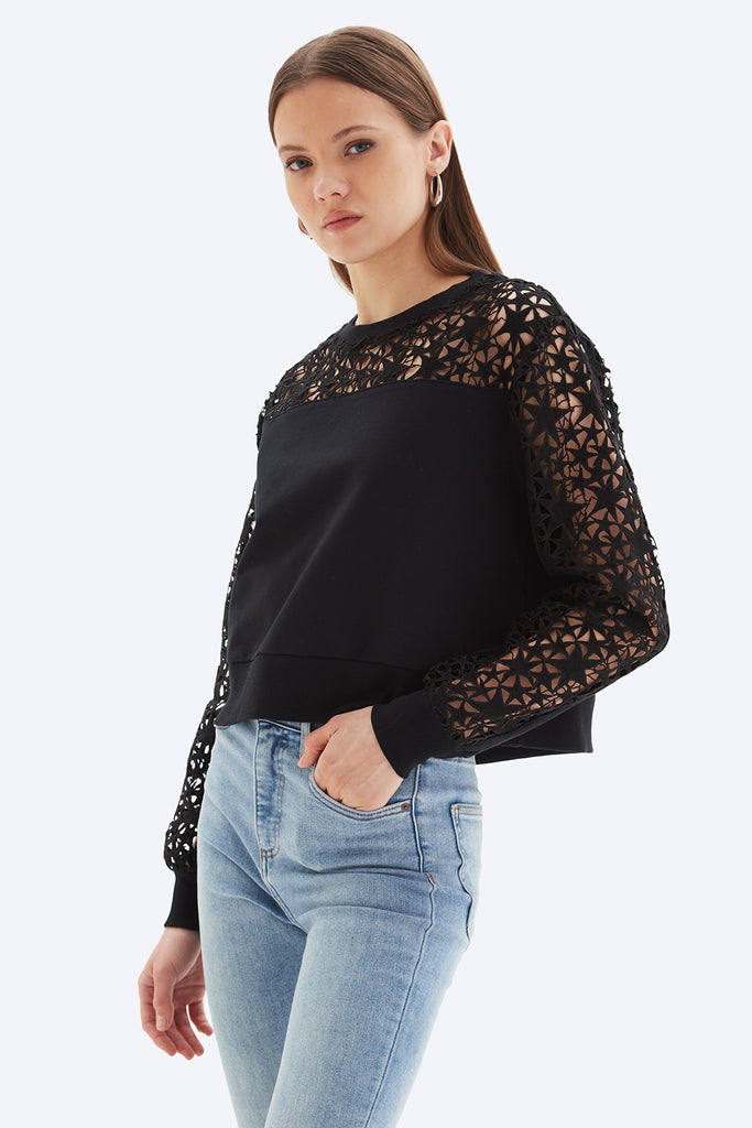 EYELET STAR INSERT - Straight Round Neck Sweatshirt