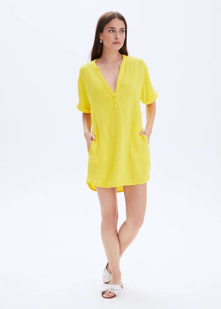 LYDIA - Rolled Sleeve Mini Gauze Dress