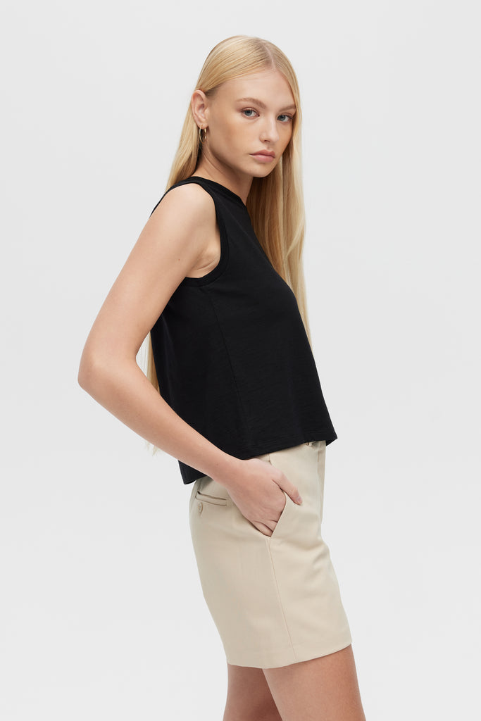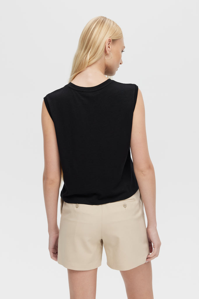 For the days when your basics need a little edge, meet MAUDE. This sleeveless muscle tee is your not-so-basic basic, crafted from ultra-soft slub jersey with a relaxed drape that says "I woke up like this"—but make it chic. Slightly boxy with a touch of movement, it’s perfect for layering or standing confidently on its own. Whether you’re heading to brunch, beach, or boardroom (on casual Fridays), MAUDE is ready to move with you.
