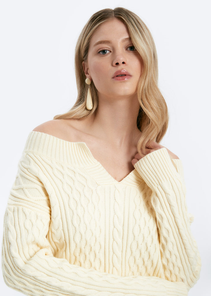 NOVA - V-Neck Cable Knit Sweater