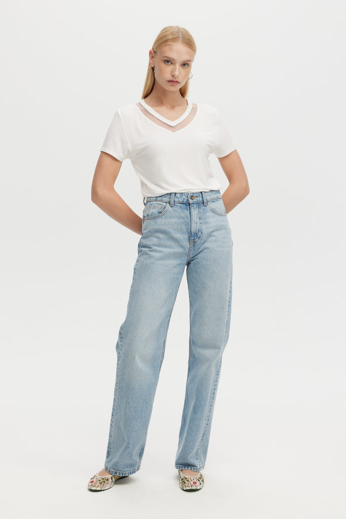 TULLE INSERTS V-NECK - V-Neck Fitted T-Shirt