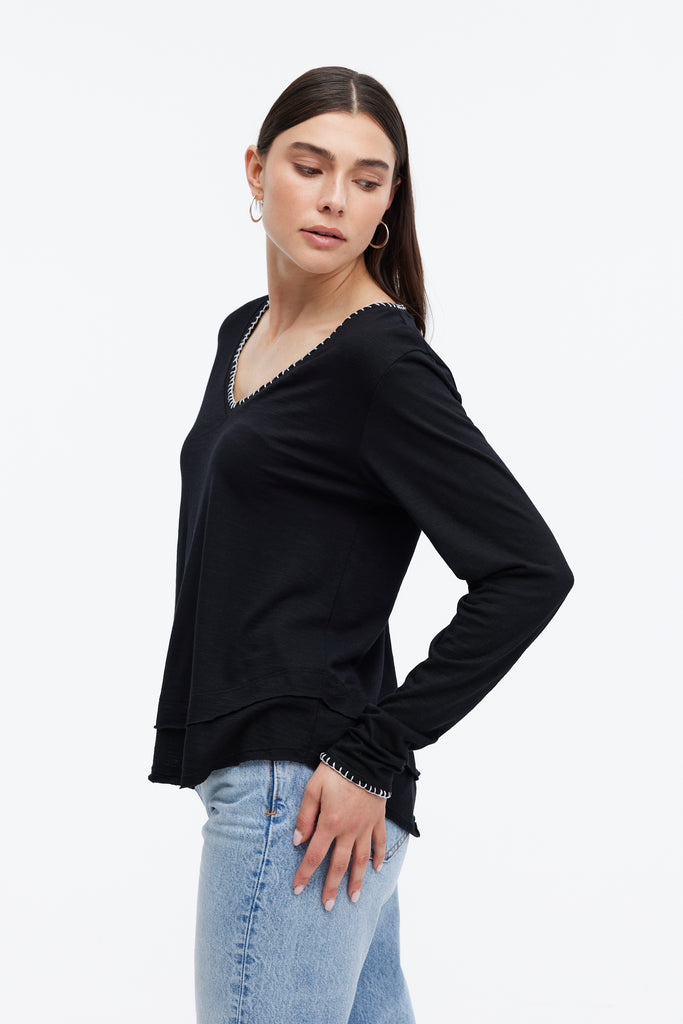 WHIPSTITCH AVA V-NECK LONG SLEEVE T-SHIRT